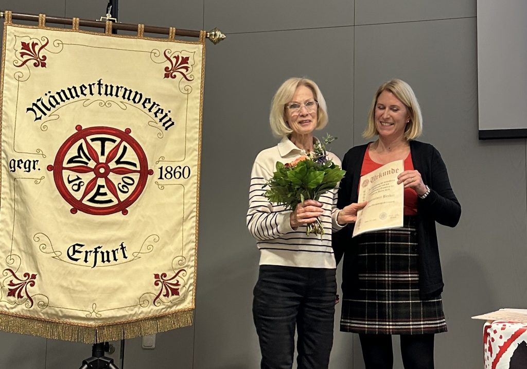 Emotional wurde es bei der Ernennung zweier neuer Ehrenmitglieder. Sehr gerührt war Hannelore Becker, die für ihren jahrelangen Einsatz im Gesundheitssport die höchste Auszeichnung des MTV 1860 Erfurt erhielt.